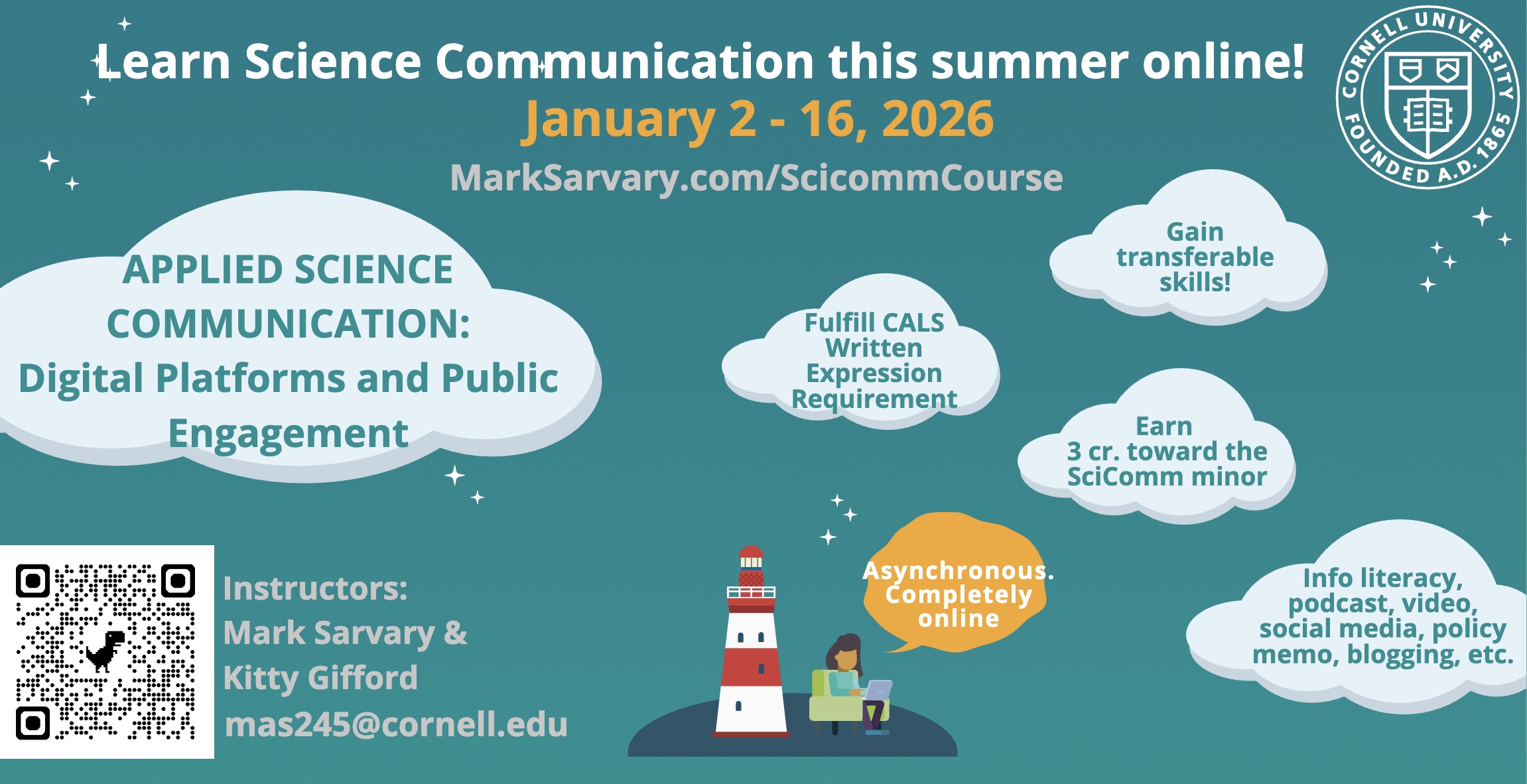 Kitty and Mark developed and co-teach this course, “Applied Science Communication: digital platforms and public engagement” at Cornell University and at the Shoals Marine Laboratory. They also hold science communication workshops for undergraduate researchers, postdocs, and faculty members at Cornell and at other institutions.